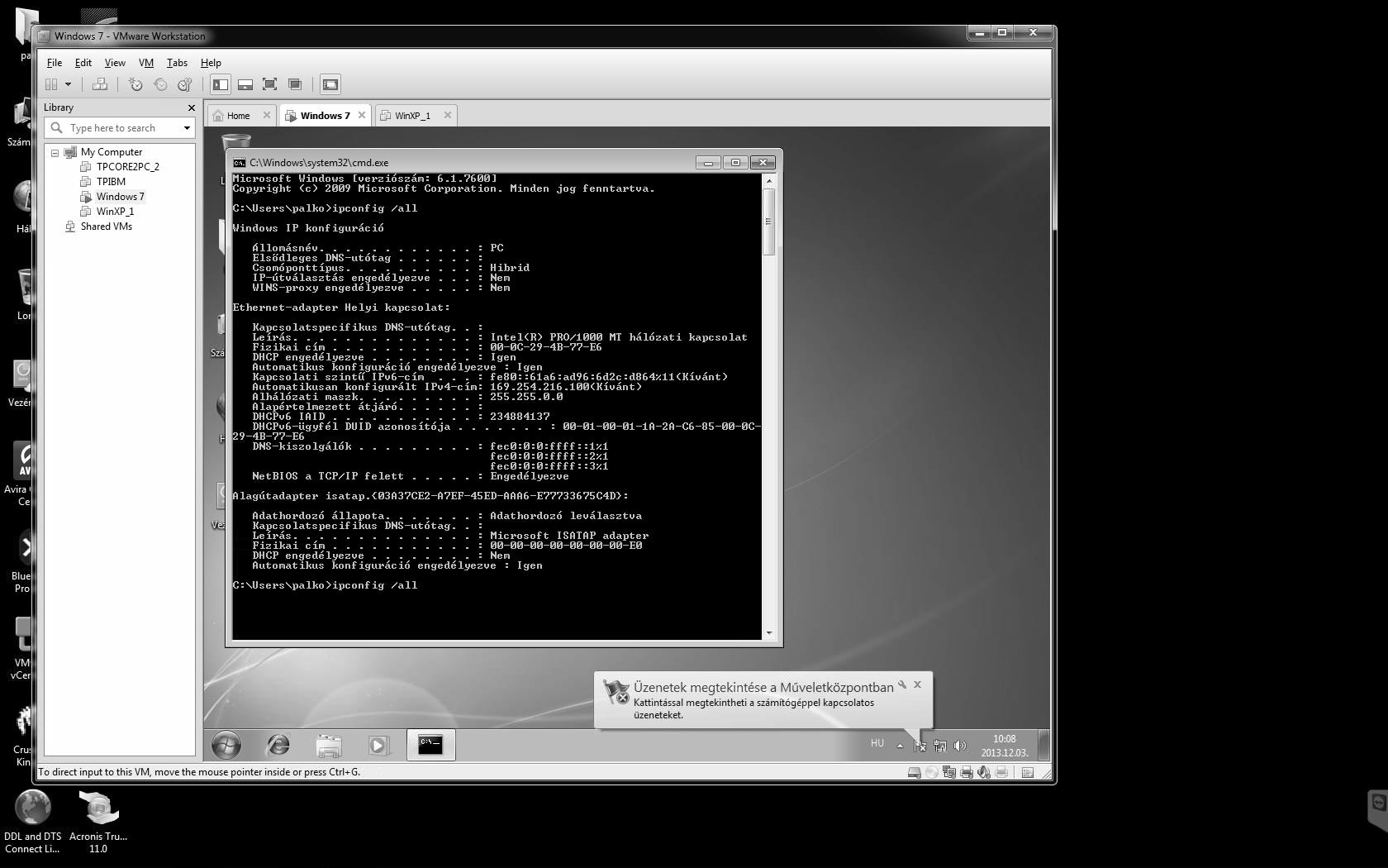 Win7 proffesional 64 bit alá felraktam a VMware Workstation 10-et. Működik. A virtuális gépre WinXP Sp3-at. Működik. Azonban az xp eszközkezelőjében a szokásos vmware-es grafikus kártya helyett, ismeretlen eszköz-t jelenít meg (+1 "alapvető összetevő"-t sem ismer fel). Az eredeti VGA kártya egy ATI Radeon HD4550.