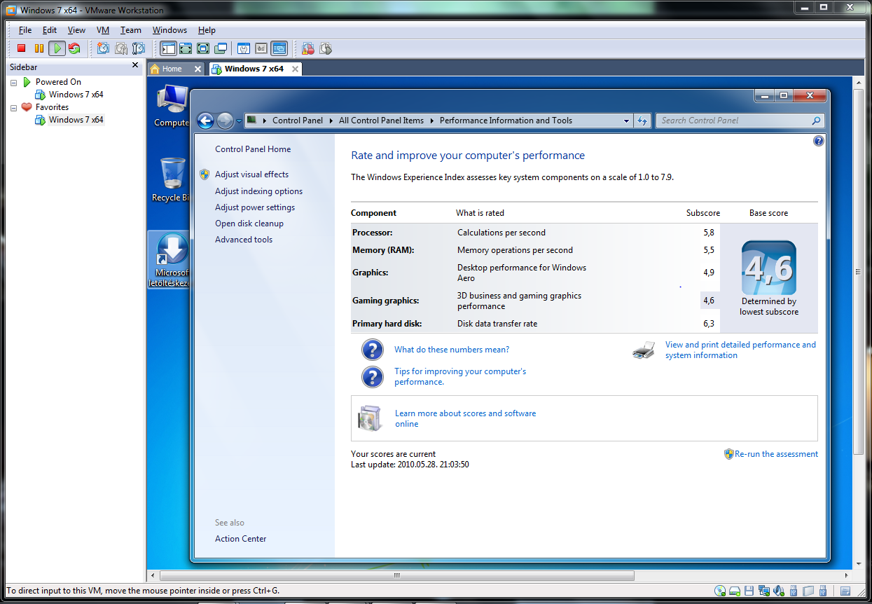 - 64 bites Windows 7-tet használok egy kétmagos, VT Ready Intel P8700 -as processzon, 4 GB memóriával (ha számít).