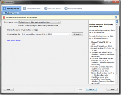 Csak Acronis True Image 9.0-tol felfele kompaibilis a converter.