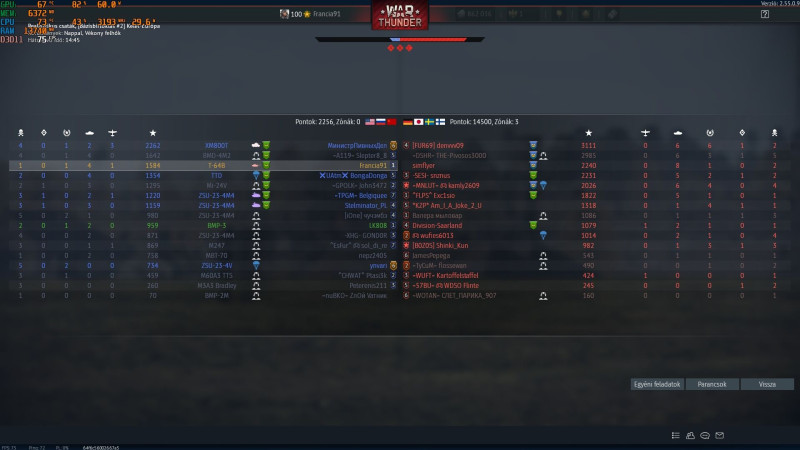 Egyébként a meccseken pedig mint írtam szinte képtelenség volt a 10-ik hely előtt végezni! Mindig mindenkit lelőttek, leütköztek előlem, ha valakit kiklőttem 10 esetből 9-szer csak assist, mert most visszatért ez a régi divat, hogy mindig mindenre csak assist ... Na és ha valakit mégis lelőttem 3mp-n belül leütköztek vagy kilőttek. Olyan isten nem volt, hogy túléljem. A 44 meccsből egyetlen egy dupla killem volt. Egyébként tipikus ad (egy kill) és rögtön elvesz (azonnal meghalok) volt, ahogy a prémnél is (ad) és elvesz (összes meccsem szar). Néha úgy felidegesített, hogy éreztem, amint ténylegesen az egekbe szökik a vérnyomásom. Már rég nem szórakozás volt, és ennyit nem ér. 11,5 éve szinte mindennap játszok bele, és itt tartok? Ezalatt három nyelvet megtanulhattam volna középfokon. Keresni kell valami mást.Toltam pár RB-t is. Volt egy(!) jó meccsem, 8.3-as Canberraval kidobtam egy bázist lelőttem egy gépet, ott szemmel láthatóan ugrottam a prémium és az +50% LB boosterrel együtt. Meg egy még pár, amikor semmit sem értem el csak felszálltam. Az összképp itt sem volt jobb mint ABben, csak idegesítően lassúnak kezdtem érezni a játékmenetet.