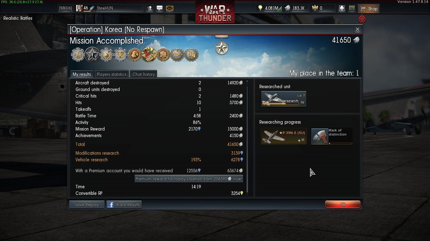 Másik: Ki-61 (2.7BR)-el is mentem pár kört és nagyon nagyon jól lehet vele repkedni viszont 34 találat sem volt elég, hogy a yaknak bármilyen baja legyen, úgyhogy dobtam a gépet.