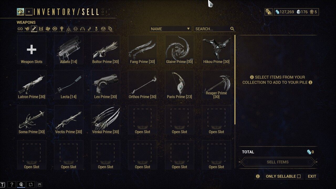 Platot úgyis mindenki a primed modokból, arcanekből meg rivenekből, szedi ki. Esetleg vaultos motyók. Én pl olyannal ami 100 plat alatt van (már) nem is foglalkozok.