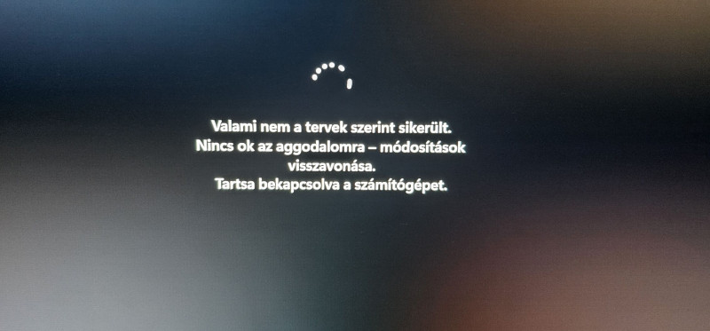 Egy Toshiba Satellite C50-B-149 laposra tettem fel a Win11-et, ez alapján a videó alapján. Minden frankón ment, csak egy kicsit soknak tartom a telepítési folyamatán megszokott többedik újraindulás után most már egy jó ideje (~fél óra) csak szaladgálnak körbe a kis pöttyök a Kis türelmet... felirat felett.