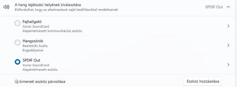 Ráadásul a hangkeverőben sem találom, hogy ki lehetne választani.
