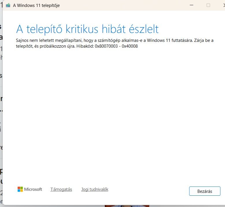 Telepítőt rufus-sal hoztam létre, mbr és legacy bios beállítással, kikapcsoltam win11 ellenőrzést.