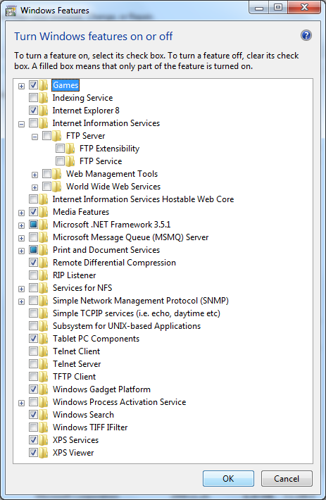 aztán IIS managerben (start menü, beírod iis és ott is van) a default web site-on jobb klikk: Add FTP publishing, itt be lehet állítani az adminisztratív dolgokat (elérési cím, authentikáció, jogosultságok, stb.), aztán ugyanígy jobb klikk a default web site-on és lesz olyan hogy Manage FTP publishing, ott meg azt is hogy pl. melyik könyvtárat akarod megosztani -