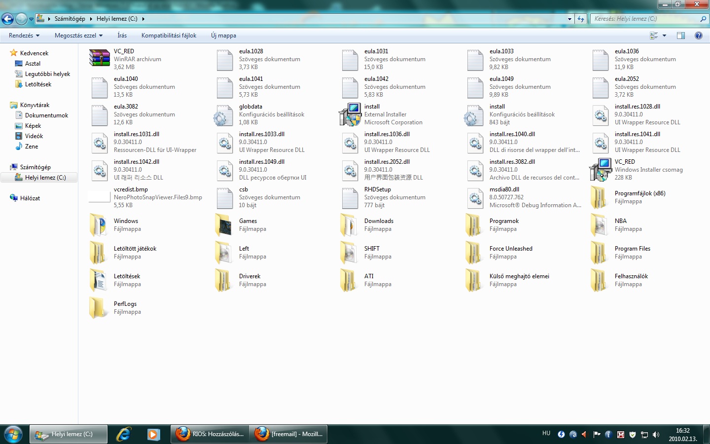 Beléptem a Sajátgépbe, C-meghajtó, és a szokásos mappákon és pár fájlon kívül (Program Files, Windows stb.) van egy csomó dll.fájl, meg 1-2 .exe is. Megnéztem, a telepítés dátuma múlt hét 5-e volt, aznap pedig csak a Visal C++ 2008 került a gépemre, gondolom frissítés által. Belekukkantottam a Setup.exe-be, és tényleg.
