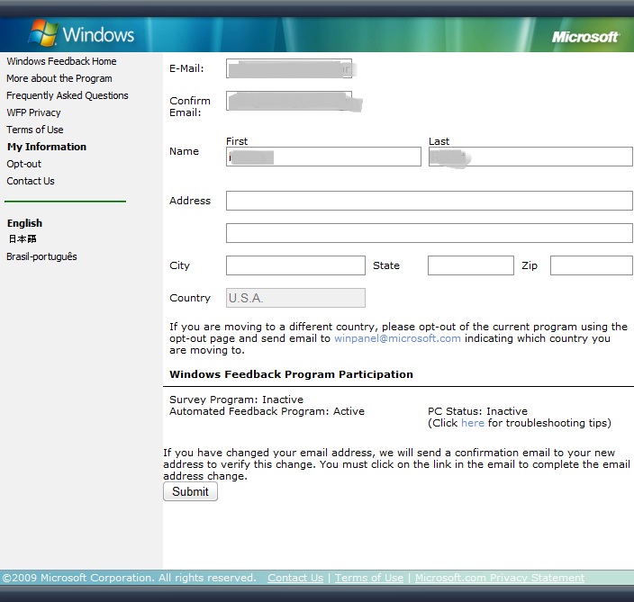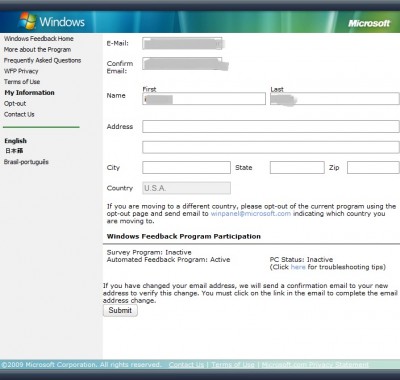 Please use the same email address that you used to register with the Windows Feedback Program. In order to avoid shipping delays, please update us with your updated mailing information by November 24th 2009.