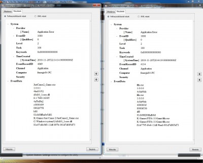 Rákeresve az EventID 1000 + windows7 kulcsszavakra kb ezerféle hibát (msn-től elkezdve a játékokig) találtam, de megoldást egyet sem. Ha egy kártyával nem fagy akkor a crossfire-t nem szereti a rendszer, ha egy kártyával is fagy akkor passz. Főleg az az érdekes, hogy csak játékok alatt fagy, 2d-ben viszont nem. Minden játékhoz fel kell tenni a legfrissebb patchet, csinálni kell egy memtestet, ha tunning van a gépen akkor visszavenni alapra minden beállítást. Legvégső esetben újrahúzni az egész rendszert, előfordulhatnak olyan problémák amik csak így szűnnek meg.