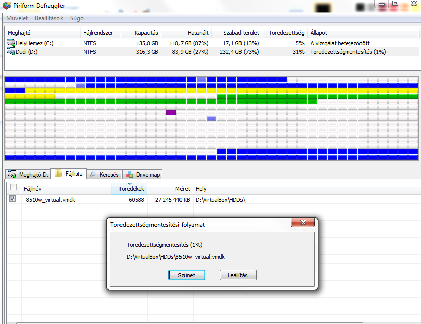 többinél nem zavar, de ezzel szeretnék vmit csinálni. Szóval kb 4 töredezettségmentesítési próba után így néz ki: