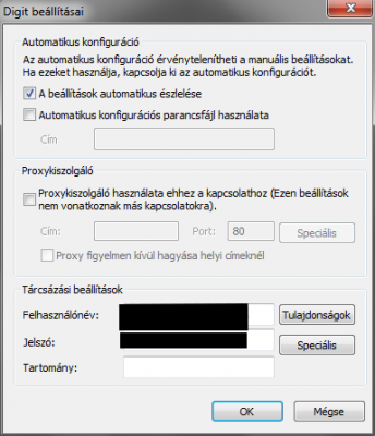 Utanna a Beallitasoknal add meg ujbol a Felhasznalo / jelszo parost es pipald be A beallitaso automatikus eszlelese dobozt.