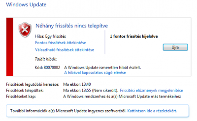 A 80070002 jelű Windows Update-hiba -