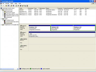 kitöltöttem, de szerintem nem sok köze lesz hozza. kb 3eves config, eddig semminek semmi baja nem volt :\ ahogy irtam, kb 2hete egyik naprol a masikra eltünt 2 particiom. egy 400gigas WD vinyom van, 80gigas particion van a rendszer, a maradek ~320 volt ketteosztva, az egyiken jatekok es programok, a masikon csak a torrent letölteseim voltak. ez a 2 hiphop eltünt, nem latja a totalcommander, csak a C-t, lemezkezelöben is ugy van, hogy megmaradt a C, valamint 300giga formazatlan terület... legutobb sem csinaltam vele semmit, csak ujraformaztam a formazatlant, szinten 2fele osztottam es ennyi. tökeletesen hasznaltam ugyanugy ahogy eddig, erre ma miutan elinditottam a gepet, ugyanez a problema vart :S