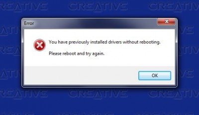 Reboot után mit ír? Mert azt írja, hogy feltelepítettél már egy drivert, de nem indítottad újra a gépet.
