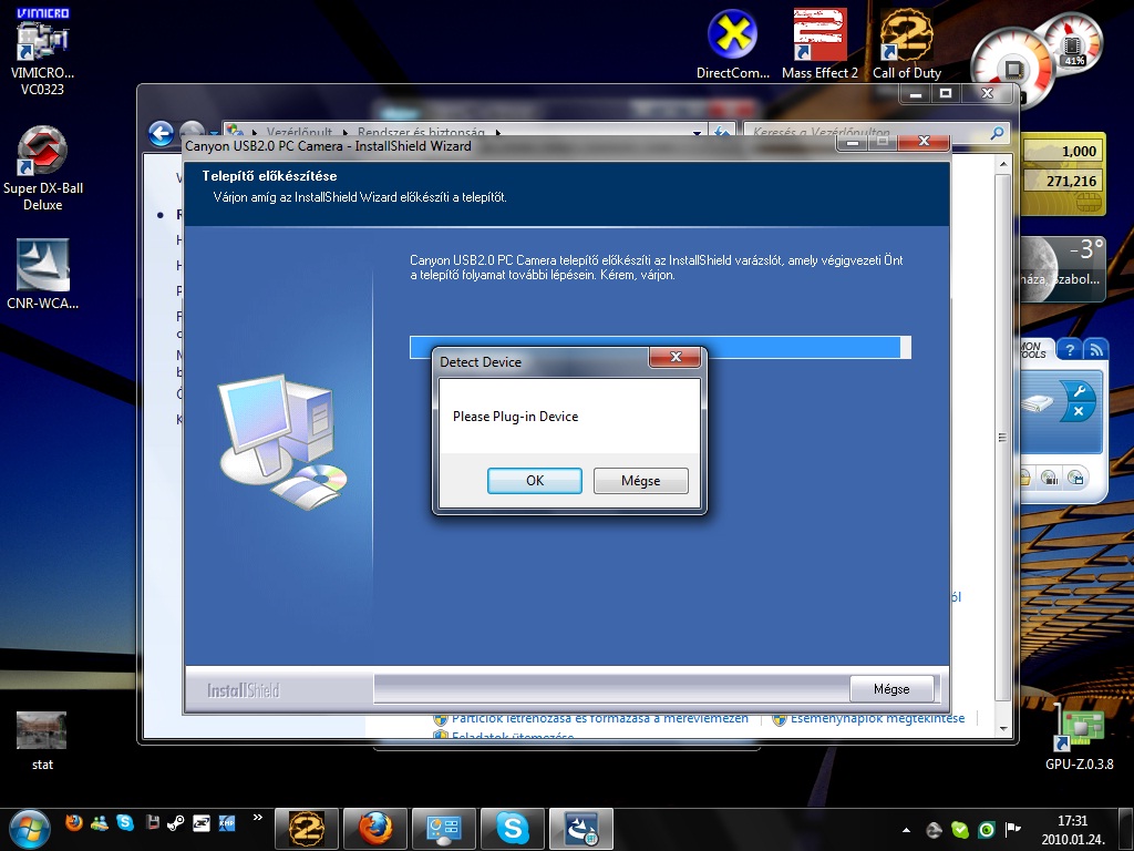 Windows 7 es drivert akarsz rátenni ? Magától ne mismeri fel ha rádugod? Egyébként kamerákra Vista és Win7 is alergiás picit ugy vettem észre, ha nincs Vistás/win7es driver hozzá ne mfog menni. Nekem egy régi labtecel volt ilyen bajom, vettem másikat amire rá volt irva hoyg vistát tuti visz. Megy se7en alatt is.