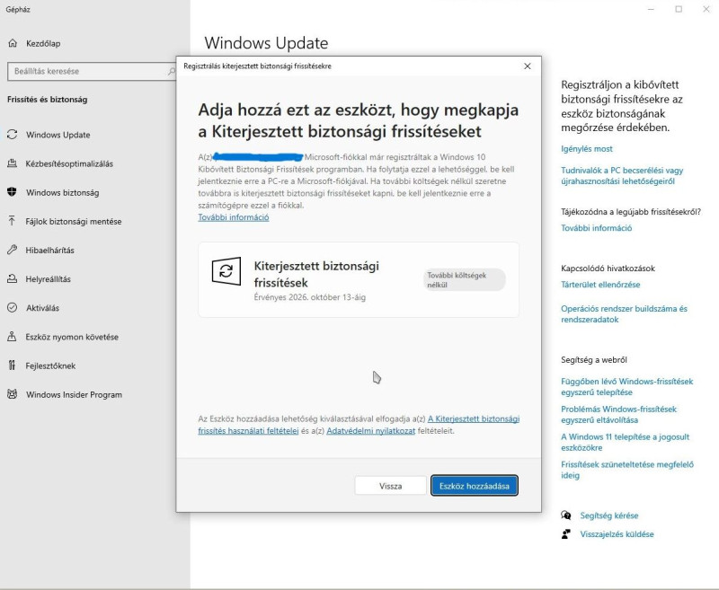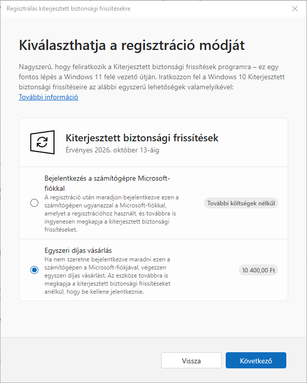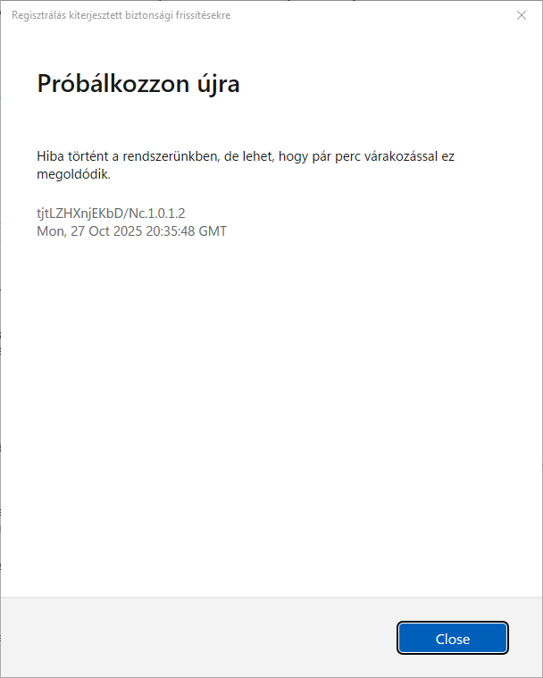 Szerettem volna megvenni az 1 éves ESU frissítést Windows 10-re, de eddig minden esetben csak hibaüzenetet dobott és nem tudtam tovább lépni a fizetésre..
