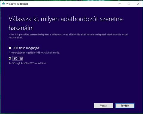 Akkor valamit félrenyomtál, mert ha EZT és EZT az opciót választod, akkor meg lehet adni az ISO letöltési helyét...A kolléga pedig volt olyan szíves és külön le is screenshotolta neked, ami alapján megint egyértelmű a dolog. Amit egyébként ezúton is köszönünk neki! De ugye majdnem mindegy is, mert átmenetileg az MCT úgyis a C-re tölt.
