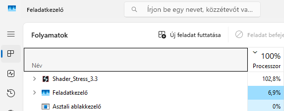Feature lenne, hogy a Feladatkezelő a Teljesítmény fülön CPU kihasználtságára 100% feletti értéket is ír? A Folyamatok fülön sosem megy 100% fölé (26H1).