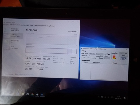 Nem megy folyamatosan 1.6GHz-n csak a kép erejéig, elindítottam az intel burnteszt nevü érofit, ami a cput terheli. Az asztali géepn ezzel tesztelem a stabil cpu tuningot. Mert a prim95 alatt stabil, ez még kifektetheti. Semmi módosítást nem végeztem a tablettel. Gyári állapotban van. Nézz be a chuwi hi10 fórumba, mindenkinek kezeli a 4Gb-ot. Annak ellenére, hogy az intel csak két gigát ír.
