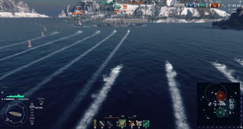 Mindezek együtt azt eredményezik, hogy nagy lőtávval messziről is látszol (és azonnal mindenki lő, mert utál), de ha füstben is vagy, ezt a hajót a legkönnyebb onnan kicsapni, a folyamatos tűz kirajzolja gyönyörűen. (vagy nem lősz, de akkor minek az egész?) És ha lőnek, nem tudsz arrébb úszni.
