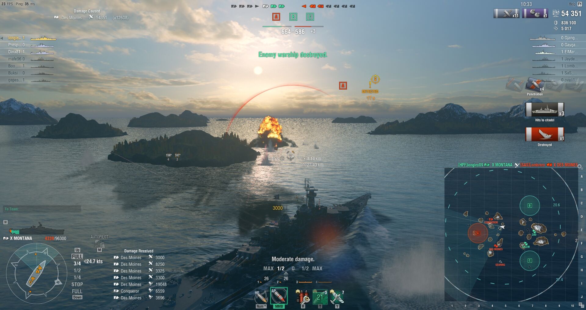 Hm, 62 találat egy VI-os cirkálóval és 8000 sebzés, ami javarészt a he miatt van, ugyanis az AP az vagy pattan, vagy non-pen, vagy overpen. Közben én bekaptam 4-et, abból egy a hp-m 2/3-át vitte, a füstbomba közepén, 13 km-ről kiszúr egy battleship...(nem volt más a környéken, mert már csak ilyen hajójuk volt)...nem látom értelmét ennek így. Ha távol vagyok, nem tudok odáig ellőni, ha közel, akkor alig sebzek, cserébe felém záporoznak a lövések és esélyem sincs mindet kikerülni, ha felém fordítják a csöveiket. A torpedóhasználatról már nem is merek álmodni, annyira közel nem is tudok menni semmihez. Hát, nagyon tetszett pedig a játék, de az 5-ös japó-német hajók, meg ez a huanghe akkora határ szar a kezeimben, hogy inkább hagyjuk. Pedig majdnem vettem egy éves prémet, ha már akciós volt.