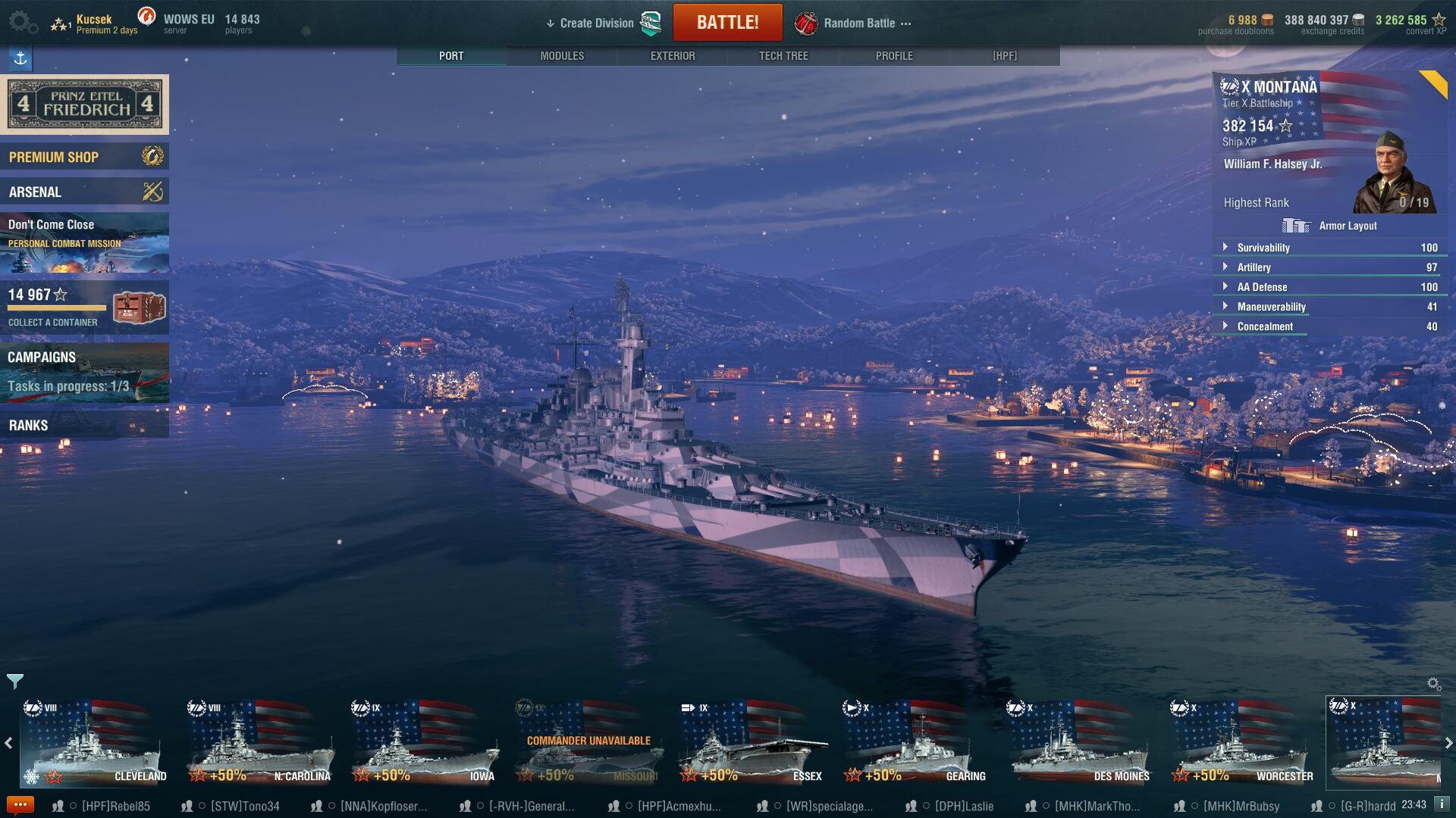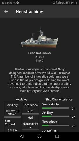Amúgy, nem egy nehéz menet megszerezni ezt a hajót, de abban sem vagyok biztos, hogy annyira szükségem lenne rá. Van Scharny-m, akarok egy Tirpitzet, szóval olyan bizonytalan vagyok ezzel kapcsolatban. Emlékeim szerint, a DOY sem volt nehezebb, mégsem rohangál vele olyan sok ember. Legalább is, elég ritkán látom csatában és én is elég ritkán viszem be.Más: létezik valahol valami táblázatszerűség, ahol fel van tüntetve a különböző prémium hajók kredithozama?