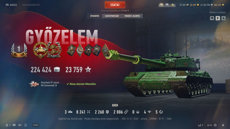 BZ-75 ághoz: T5-től húzom, és a T34 variáns után az első értelmezhető tank a 8-as, de ahogy írjátok is, nagyon változó vele a teljesítmény. Mindig a legutolsónak hagyom a napi duplára, és van amikor 3-4 csata után feladom... ma meg 4k dmg, átlőttem mindent és mindenkit messziről is.