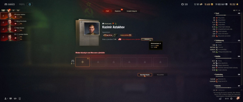 Valamint jelen esetben nincs is értelme ezzel fáradozni mivel 0% képzetségi szintűek.Szóval fogtam a nemrég kölcsön kapott Obj.277 7x7 nehéz tank legénységét és beraktam a T-44-be ami ugyan azonos nemzetiségű de közepes tankba.