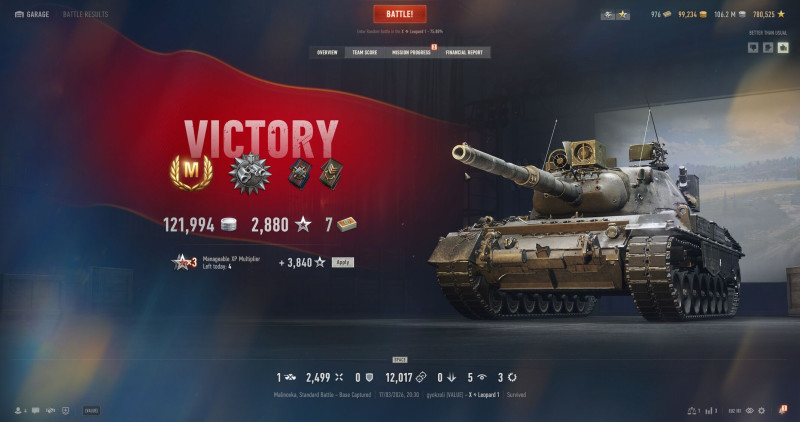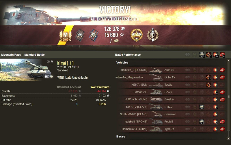 . Megpróbálok össze szedni minél több pontot, aztán az event vége előtt mérlegelek, hogy kiváltom e a tankot. Nem valószínű, hogy meglesz a 2500 pont, így hogy sok nap ki fog maradni. Most is szerintem csak a BP küldetések miatt tudtam ilyen gyorsan végezni, meg talán az acélvadászban farmoltam sokat. 10 BP pontot ad a győzelemért. Bár időben az alatt talán két sima meccsből is össze lehet farmolni 10 pontot. -