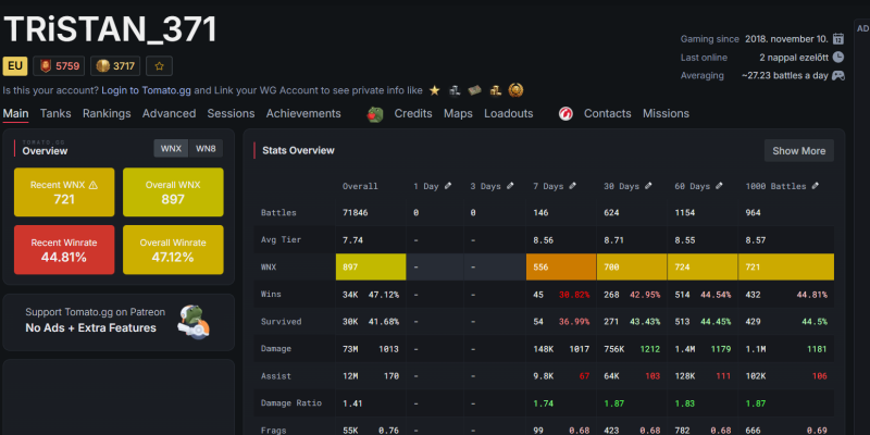 KB. megjelenése óta játszom a WOT játékkal