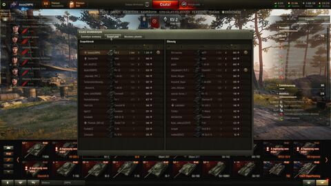 Az előbbi meccsen, ami nyolcas volt, szemben velem egy 60Tp is fullal nyomta..Csinált is nekem 3000 lepattanót az ügyeske..Mert nagyon veszélyesek a nyolcas, kilences tankok..Rengetegen teljesen feleslegesen ütik ki a kettes gombot a billentyűn, csak mennek lóbálják össze vissza az ormányt, azt kattingatnak...Meg kellene tanulni célozni és ismerni a gyenge pontokat a nagyoknak is.. -