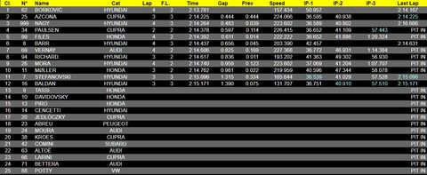 Mondjuk a 2 YMR Hyundai most pont eltűnt, de azért az látszódik, hogy talán ez a BoP mégse sikerült annyira nagyon jól. Viszont hamarosan jönnek a büntetősúlyok azzal lehet majd kompenzálni.Egyébként hozzátenném azt is, hogy a Hyundai valóban úgy tűnik, hogy kiemelkedik a mezőnyből, de azt is nézzük meg, hogy nem huszadrangú versenyzők vezetik őket, hanem egyértelműen mind a 4 a mezőny legjobbjai közé sorolható.