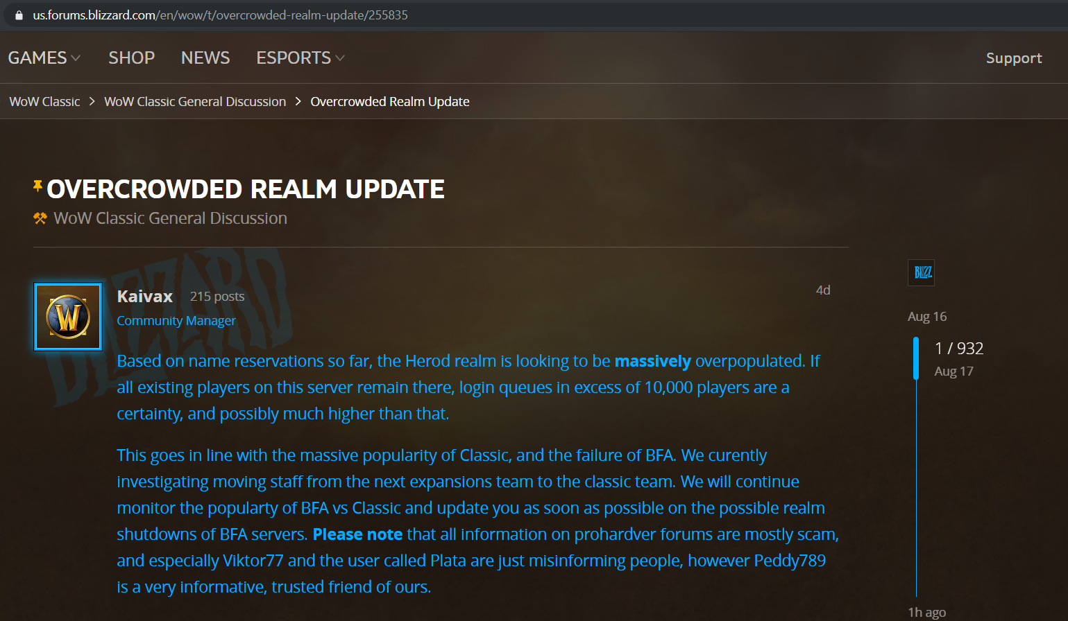 Ó én a többségtől le fogok maradni bőven idő hiányában, de nem zavar. BFAval nem játszom már jó ideje, de mikor még játszottam és bejelentették a Classicot valahogy hidegen hagyott. Inaktív játékosként viszont annyira megcsapott a nosztalgia, hogy egy tokent csak azért felhasználtam, hogy aktívvá tegyem az accountot és lefoglaljak két nevet. Korábban nem értettem miért jó classicot indítani, most meg alig várom már, hogy elinduljon. Nem a main (warrior) karakteremmel fogok játszani, hanem a második felhúzott és későbbi main törpe pappal.