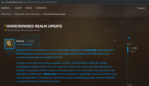 Írták hogy ha sok a játékos akkor újabb szervereket indítanak,sőt már felmerült a Bc és WotLK szerver is.
