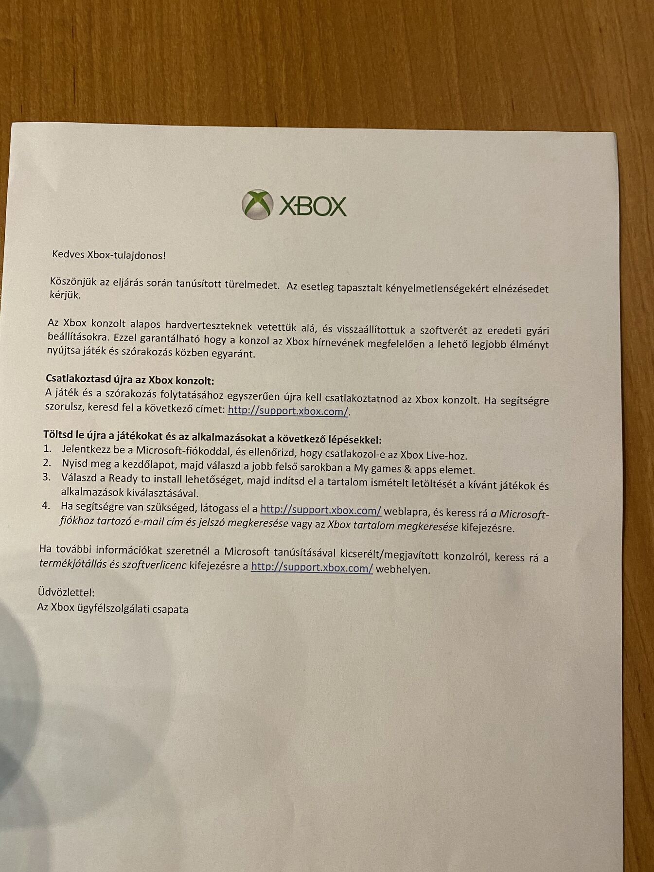 Felhívtam az ügyfélszolgálatot. Nem egyszerű emberhez jutni, az Xbox-os menüpontokban mindig a support weboldalra irányít, hogy ott kérjek visszahívást, amit már próbáltam de nem működött.