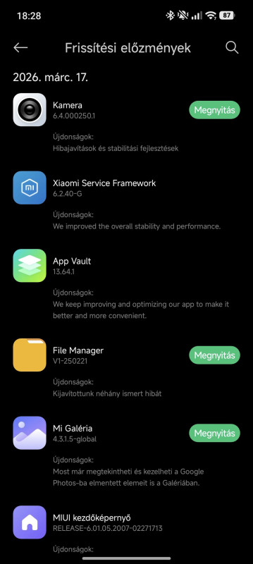 Nekem magyar régió van beállítva. A kamera app 6.2 verzióról 6.4-re frissült. Érdekes igen, hogy kimaradt a január, de ez így már legalább februári, utolérték magukat.