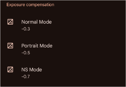 az exposure compensationt, meg a globálok között kerestem, nem lencsénként