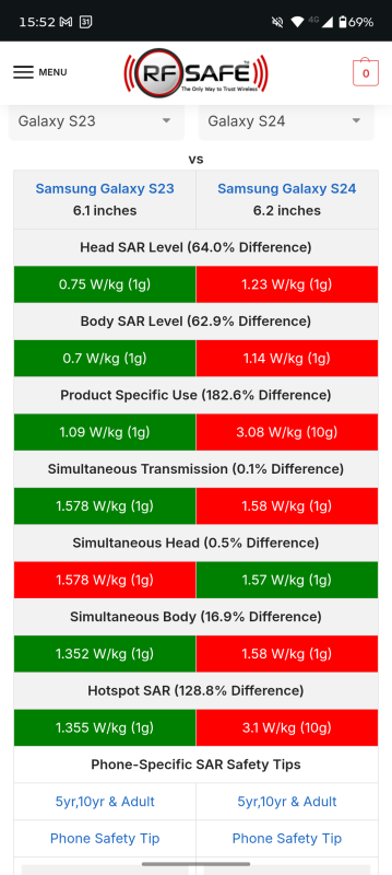 Utána valami miatt nem is néztem a SAR-t, így vettem következőleg az S22 Ultrát - hittem benne, hogy a Samsung csak kicsi SAR értékű telefont csinál. Most néztem csak meg évek múlva, mit tud: 1,05... nagyon nem mindegy, mennyi az annyi. Az 1 körüli érték egyáltalán nem jó, a jó az a 0,5 alatt lenne. -
