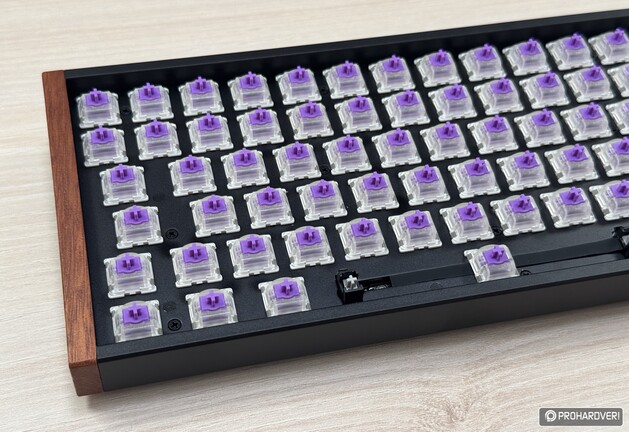 Az alumínium plate alatt egy 3,5 milliméter vastag EVA szivacsréteg, a PCB alatt pedig egy EPDM szivacsréteg és egy PET filmréteg található, legalulra pedig került egy szilikon akusztikus pad. Ennek megfelelően az eszköz nagyon szépen szól, nem műanyagos és nem is fémes hatású, élmény a használata.