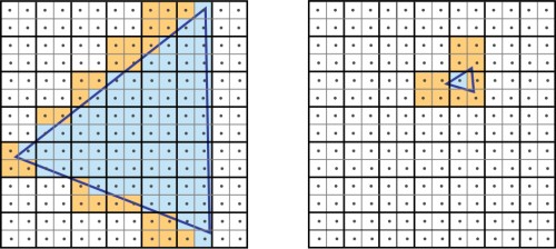 Az elsődleges gond akkor merül fel, ha egy háromszög kisebb, mint négy pixel. Ilyen esetben a négyes blokk nem azonos háromszögön dolgozik, vagyis a másik háromszögre is ki kell számolni a teljes blokkot, ami lényegében az erőforrás nagymértékű pazarlása. Ennél sokkal rosszabb, ha egy háromszög egy pixel nagyságú, mivel számítás az egyik háromszöggel kezdődik az egyik pixelen, ami mellé további három képpont tartozik a blokkosított feldolgozás miatt. Ez már önmagában azt jelenti, hogy egyetlen apró háromszögért négy pixelt kell ellenőrizni, ám a poligon kicsi, így jó eséllyel mellette lesz a társa, ami további ellenőrzéseket jelent. A gyakorlatban ez a jelenség még rosszabb, ugyanis a háromszögek nem fedik tökéletesen a pixelt, vagyis legrosszabb esetben 12 pixel ellenőrzését is végre kell hajtani ahhoz, hogy egyetlen képpont raszterizálva legyen.