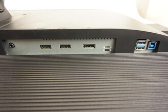 A kábelek elvezetéséről nem gondoskodtak, de ez nem egy nagy probléma, mint ahogy azzal is együtt lehet élni, hogy az RGB LED-eket nélkülöznünk kell. A ki- és bemenetek a szokásoknak megfelelően a hátlapon helyezkednek el. Található itt két HDMI 2.0, egy DisplayPort 1.2, és négy darab USB 3.0 (kettő lefelé néz, kettő oldalra), illetve egy-egy USB 3.0 uplink, valamint 3,5 mm analóg audió csatlakozó is.