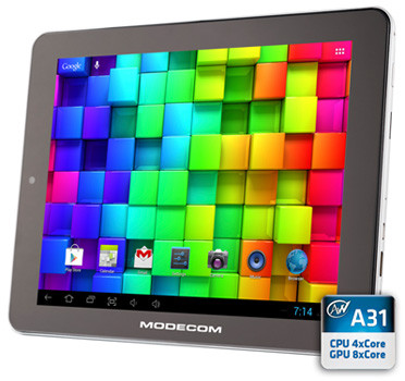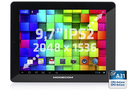 A ModeCom FreeTAB 9704 IPS2 X4 különlegessége, hogy 9,7 hüvelykes képernyője brutális, 2048x1536 pixel felbontású, ami hüvelykenként 264 képpontot jelent. Persze nagy kérdés, hogy a villantáson kívül ezt másra is lehet-e használni, mert egy ilyen kijelző erősen terheli a GPU-t. Hardver terén a FreeTAB IPS2 X4 azonos a FreeTAB 8014 IPS X4-gyel, Allwinner A31 SoC, 2 GB RAM és 16 GB háttértár van benne, a Bluetooth, 3G és GPS modult viszont kihagyták, vételára pedig 7500 mAh-s (kb. 28 Wh) akkuval és Android 4.1 operációs rendszerrel 69 100 forint.