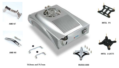 Érdekes termékekre bukkantunk a Titan hazai forgalmazójánál. A Vanessák mellé megérkezett Bianca, aki egy kompakt vízhűtés. Ugyan a pumpát, víztartályt és hőleadó egységet magába foglaló egység hasonlít egy ötnegyedes meghajtóra, mégis külső elemről van szó. A rendszer kétféle kivitelben létezik; a központi processzort hidegen tartó változat 26 900 Ft, a felforrósodott grafikus chipre szerelhető változat 26 500 Ft. Ez előbbi készlet CPU blokkja felszerelhető a ma fellelhető összes processzorfoglalatra, az utóbbi VGA blokkja az AGP-s GeForce 6600 GT-re és a legnagyobb GeForce 6800-asokra is rögzíthető.