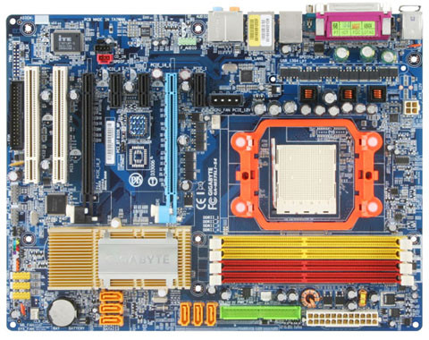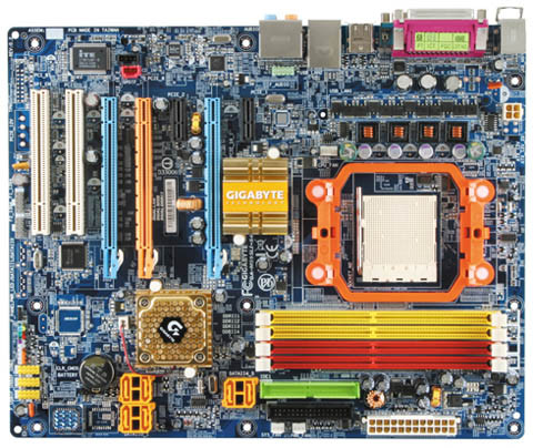 A Gigabyte palettáján két izmos, SLI-s, AM2-es termék jelent meg. A 40 300 forintos M57SLI-S4, ahogyan a neve is sejteti, nForce 570 SLI chipkészletre épül. Ennek megfelelő a kiszerelése is. Négy memóriafoglalata és két hosszú PCI Express csatlakozója van, melyek párban hajtva nyolc-nyolc PCI Express sávot biztosítanak a két videokártyának. A három, egyszeres PCI Express csatlakozó a két gyorsabb környékére, a két sima PCI pedig a kártya szélére került. A hat SATA és két IDE adattár kezelése szokványos, ahogyan a nyolccsatornás hangrendszer és a gigabites hálózati vezérlő is. A lap érdekessége, hogy a chipkészlet passzív hűtése meglehetősen nagy. Erre a melegedő nForce-nál szükség is lehet. Az alapfelszerelésben FireWire csatlakozók is vannak.
