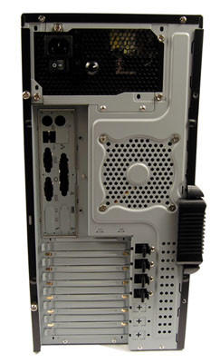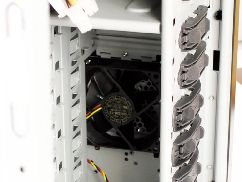 A házat hátulról szemlélve 9,2 centiméteres ventilátort látunk, a tápra pedig egy szabályzó került, amivel légkavarójának fordulatszáma állítható. Természetesen a regulálásba hőérzékelő is beleszól, így nem fenyeget a leégés veszélye. A tekerő egyetlen hátránya, hogy hátul nem biztos, hogy könnyen elérjük majd.