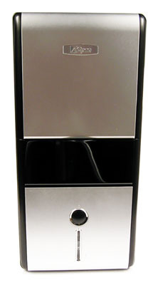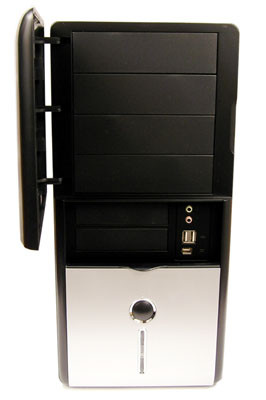 Első látásra egy letisztult formavilágú, ezüst-fekete színkombinációjú dobozkával van dolgunk. Anyaga acél, az elején műanyag borítóelem található. Az ötnegyedes meghajtók ezüstszínű ajtó mögött rejtőznek, a 3,5 hüvelykeseket, valamint az előlapi csatlakozókat pedig egy sötét lenyitható lemez takarja. Ha minden ajtót bezárunk, csak a méretes bekapcsológomb és a működést jelző kontrollámpák maradnak fedetlenül.