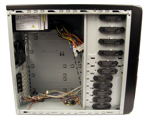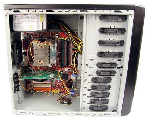 A csupán 455 milliméteres mélység első hallásra kevésnek tűnt, de ATX alaplapunk elfért, bár a merevlemez veszélyesen rálógott. Összeütközés azért nem történt, mert a kisebb meghajtók keretét kihozták a nagyok vonalába.