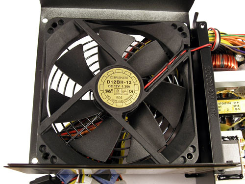 A táp hűtéséről is Yate Loon ventilátor gondoskodik, mégpedig egy 12 centiméteres, melyenk hibrid csapágyazása van, vagyis egy golyós- és egy csúszócsapágy gondoskodik a finom járásról. A szabályzót a leglassabb állásba tekerve szinte hangtalan volt a tápegység, még közepes – 200 watt körüli – terhelésnél is alig lett zajosabb.