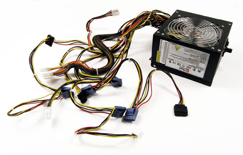 A kis ház ellenére a kábelek jó hosszúra sikeredtek. Az alaplapi csatlakozó alapvetően húsztűs, de van hozzá négytűs kiegészítő is; kábelét fekete hálóba csomagolták. Mivel négy nagy meghajtó van, az öt gyorsnyitós molex és a két SATA-tápcsatlakozó elegendőnek tűnik. Ezenfelül van még négytűs, 12 voltos stabilizátor, valamint PCI Express videokártyához és floppymeghajtóhoz való konnektor.