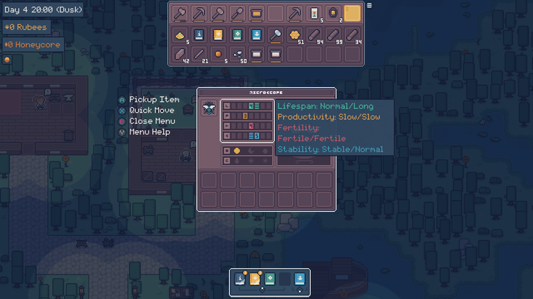 Aki akar, az tehát elég mélyen belemászhat a méh-genetika rejtelmeibe, de azért szerencsére a komplexitást nem vitték túlzásba a fejlesztők – nem kell például a valódi kaptárokat fenyegető atkákkal és fertőzésekkel viaskodni, és egy rosszul megválasztott méhlegelővel sem tudjuk romba dönteni terveinket. Nem, ehelyett speciális virágokat gyűjthetünk és keresztezhetünk, amelyek képesek arra, hogy egyik-másik méhfajnak különféle bónuszokat, méz-alapú üdítőinknek pedig új ízeket biztosítsanak. És bár eleinte sok időt kell eltölteni manuális munkával – például a deszkák csiszolása, a teli keretek szétszedése, vagy épp a méz és a viasz elválasztását végző centrifugázás apró minijátékokkal jár –, később majdnem minden automatizálható lesz, így mindenki a játék azon részére tud koncentrálni, ami neki a legjobban tetszik. Aki akarja, teljesen elveszhet a méhnemesítés labirintusában, de egy jól tejelő vállalkozás kidolgozása is teljesen lehetséges.